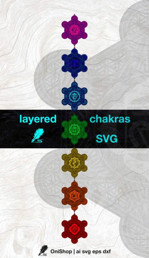 Corte Láser de Chakras 3D | Vector SVG de Geometría Sagrada | Archivos AI, EPS, DXF para Diseño Profesional