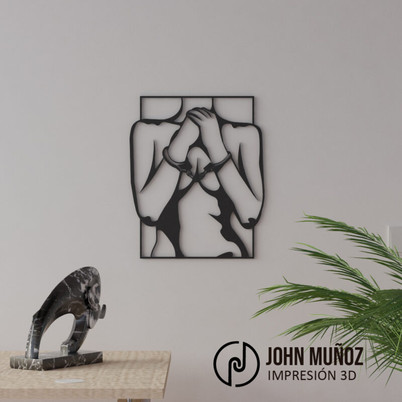 Encadenada al deseo, se entrega sin palabras. Su figura habla de juego, entrega y poder invertido. Una musa que domina desde la sumisión.