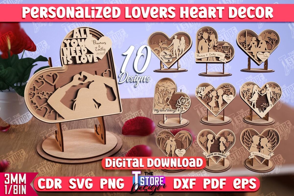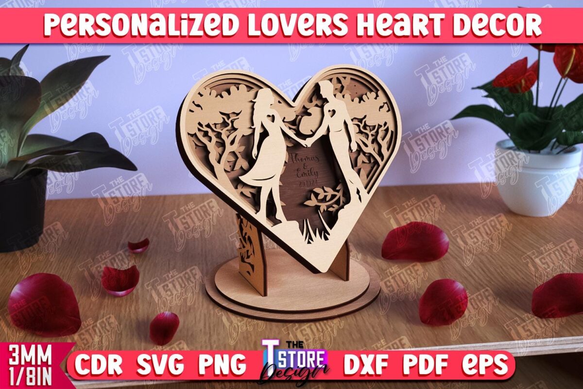 Decoración de Corazón Personalizada para Parejas – Boda y San Valentín, Corte Láser Multicapa