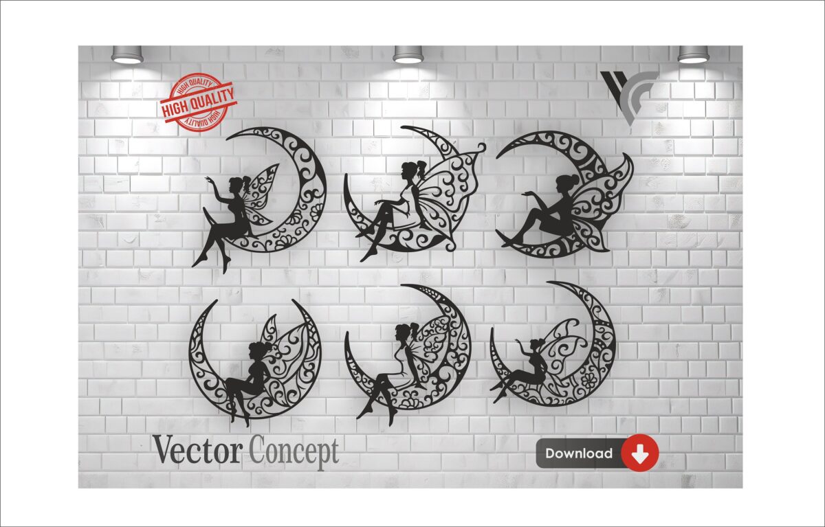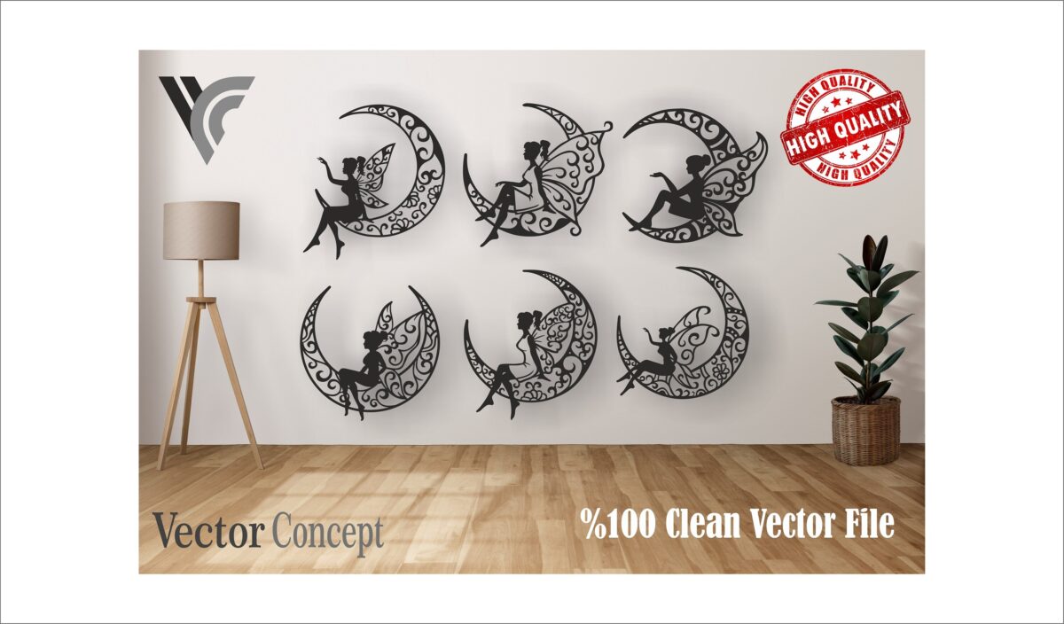 Decoración de Pared de Hadas en la Luna para Corte Láser – Archivos SVG, DXF, CDR, DWG, EPS