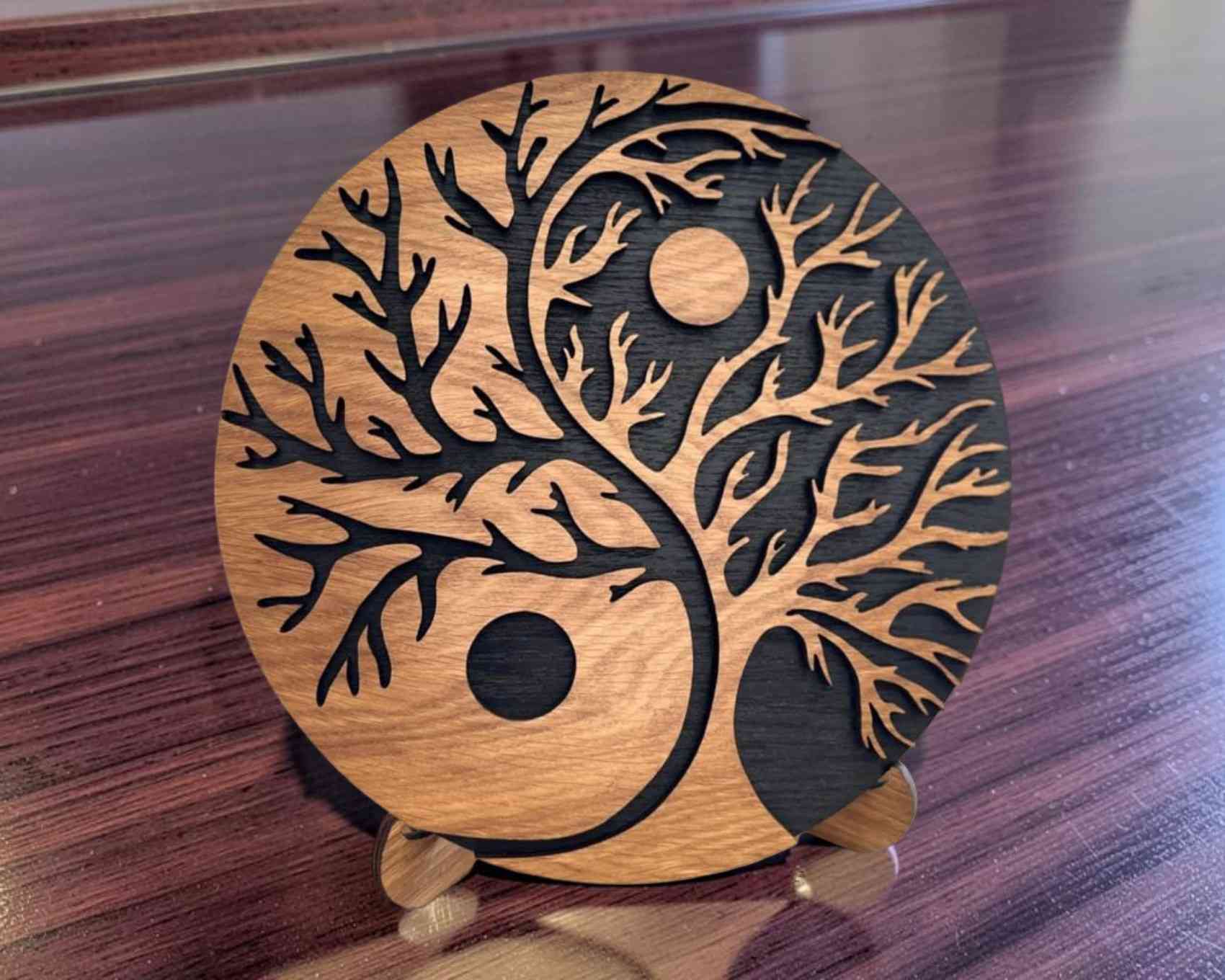 Decoración de yin yang árbol de madera para mesa — archivo para corte láser (MDF)
