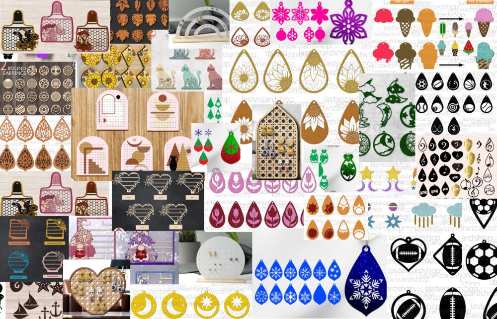 Diseño de aretes para corte láser CNC – Superpack de 77 elementos únicos y creativos
