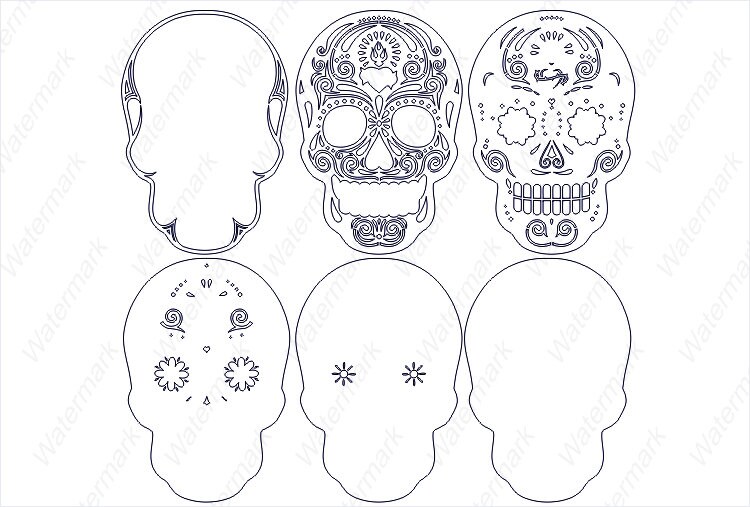 Este modelo vectorial de Sugar Skull es ideal para corte de papel y láser, siendo compatible con herramientas como Cricut, Cameo y Glowforge.