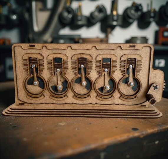 🔧 ¡Eleva tus proyectos creativos con nuestros archivos láser decorativos que presentan un cautivador diseño mecánico de motor de pistón!
