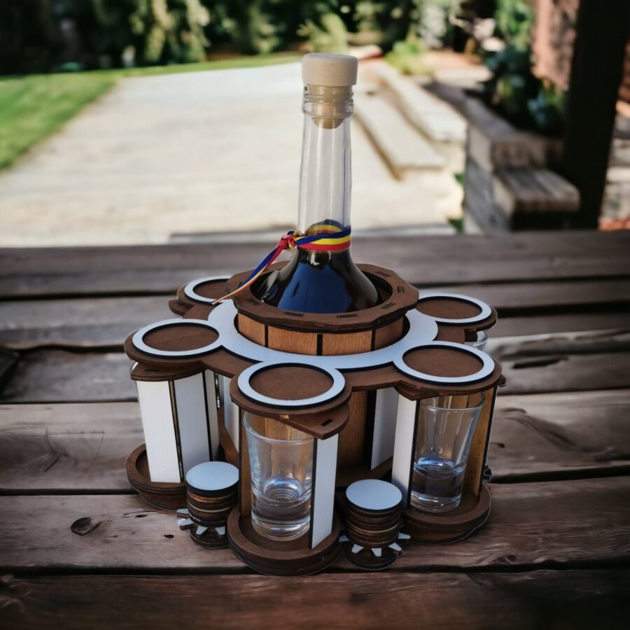 Dispensador de 6 Vasos con Botella para Corte Láser – Almacenamiento de Vidrio Personalizado