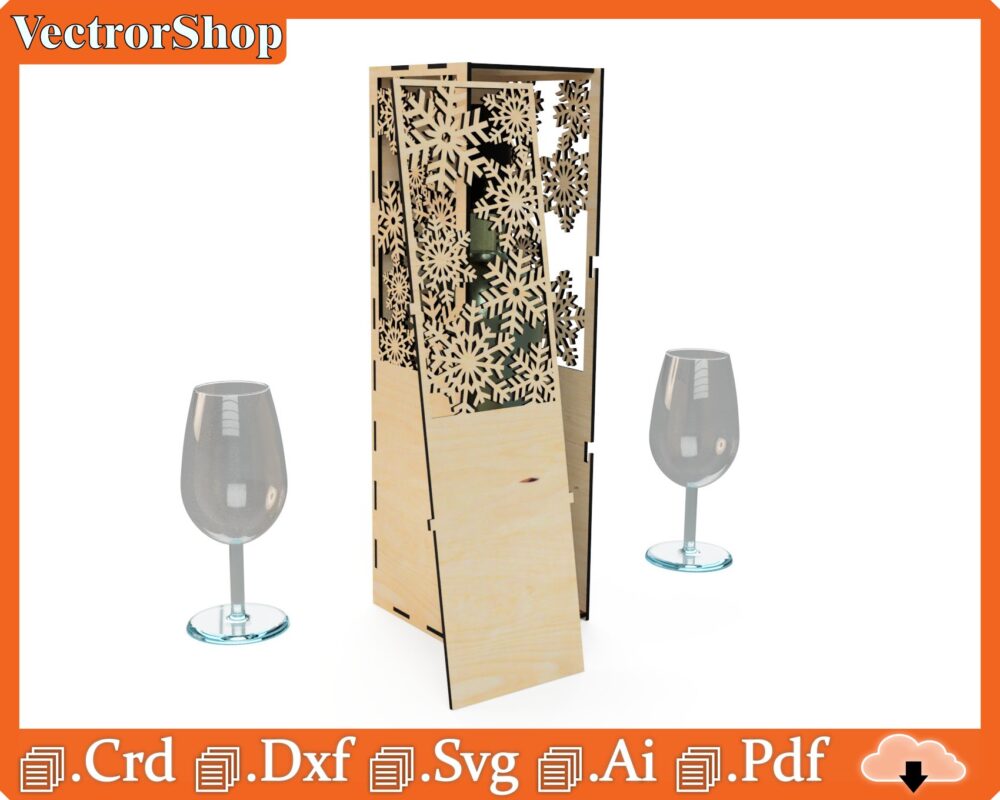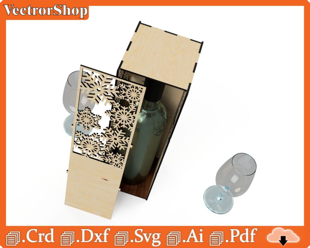 Caja de Vino de Corte Láser Temática Navideña – Plantillas CNC para Regalos Creativos