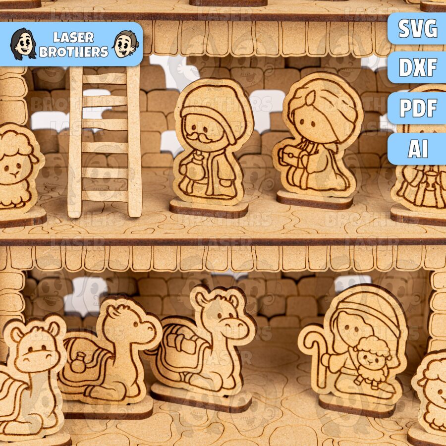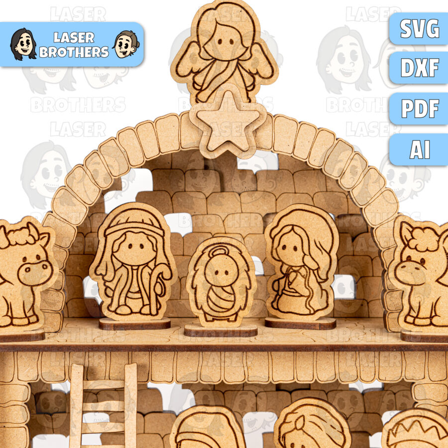 🌟 ¡Crea un hermoso belén navideño con nuestros archivos digitales cortados con láser, perfectos para tu máquina Glowforge! 🎄 Este diseño es ideal para compartir momentos mágicos con los niños y dar vida a la Natividad.