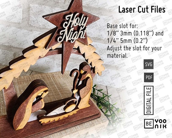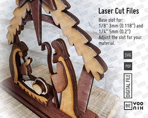 ✅ Archivos SVG y PDF para la niñera de estante del Belén en grosores de 3 mm y 5 mm (modificable según el material).
