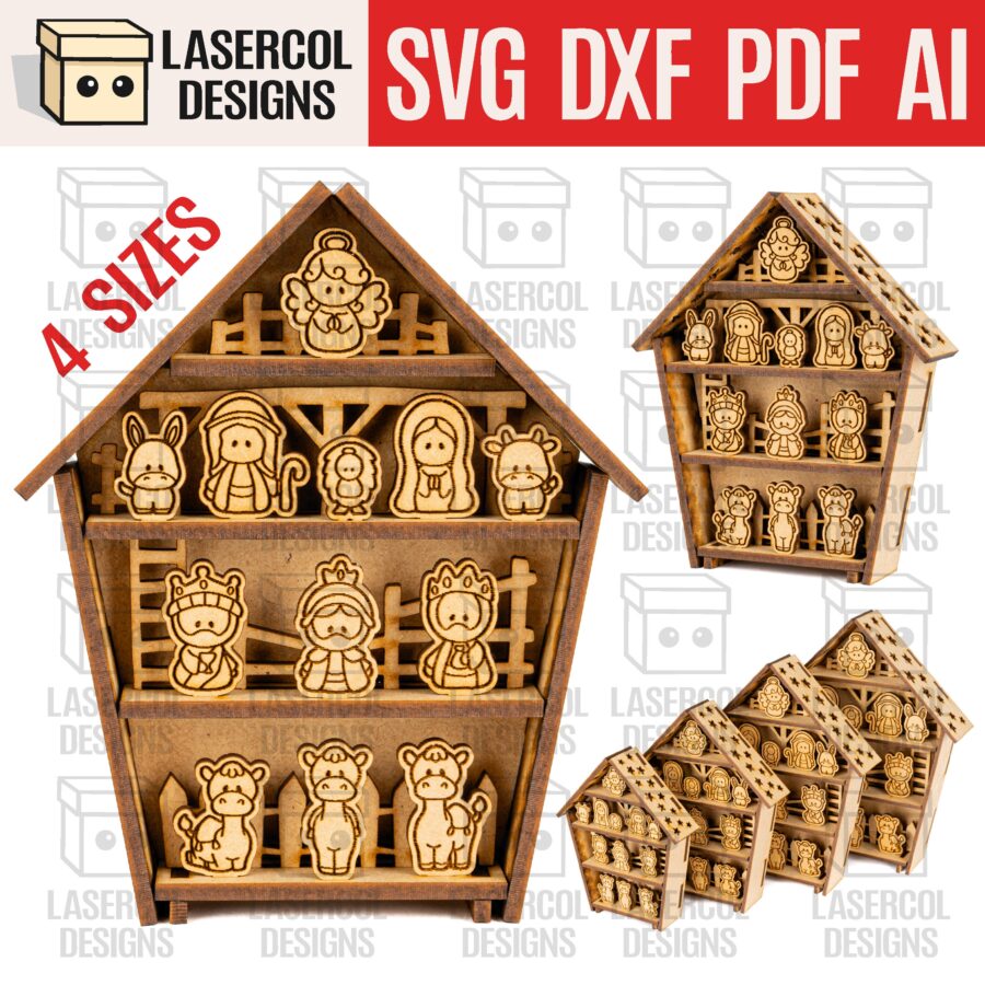 🎄 ¡Crea una hermosa escena de la Natividad con nuestro exclusivo conjunto de archivos para corte láser! 🌟 Este belén está disponible en 4 tamaños, lo que te permite personalizar el proyecto según tus necesidades.