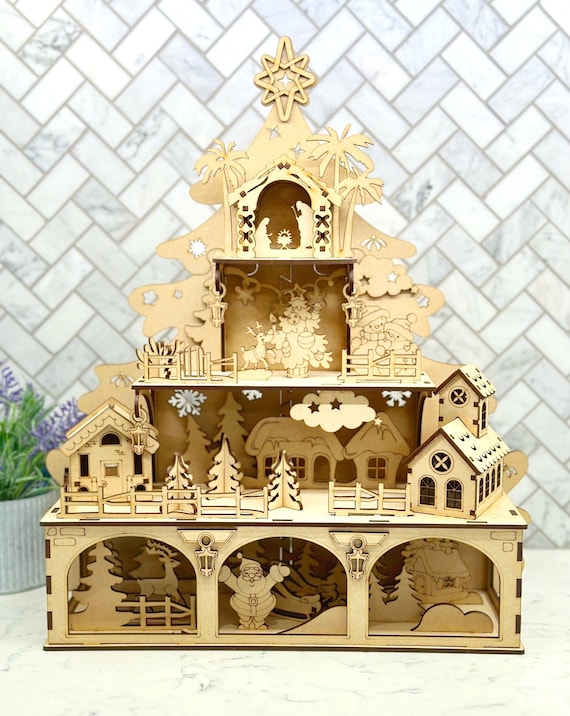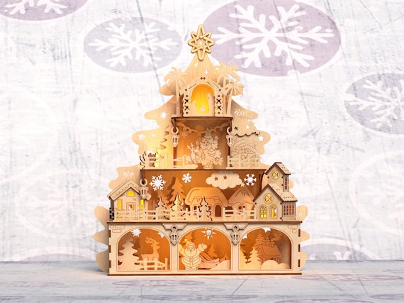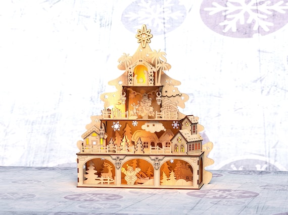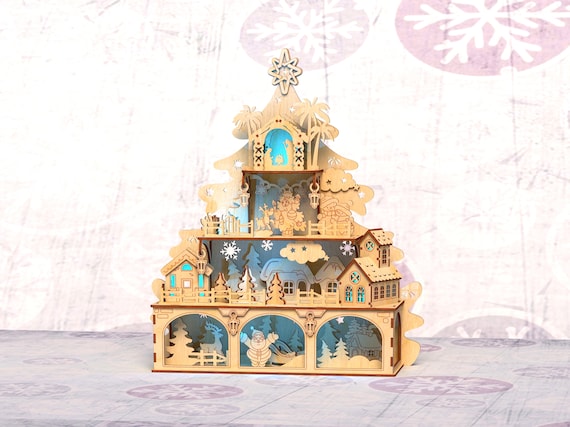Escena Navideña de Árbol de Navidad – Archivos SVG, Ai, Cdr, Dxf y Pdf para Corte Láser