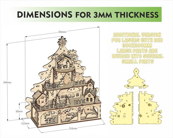 🔹 Versión adicional: Para láseres con cama de 300×200 mm, las piezas grandes se dividen en varias piezas pequeñas.