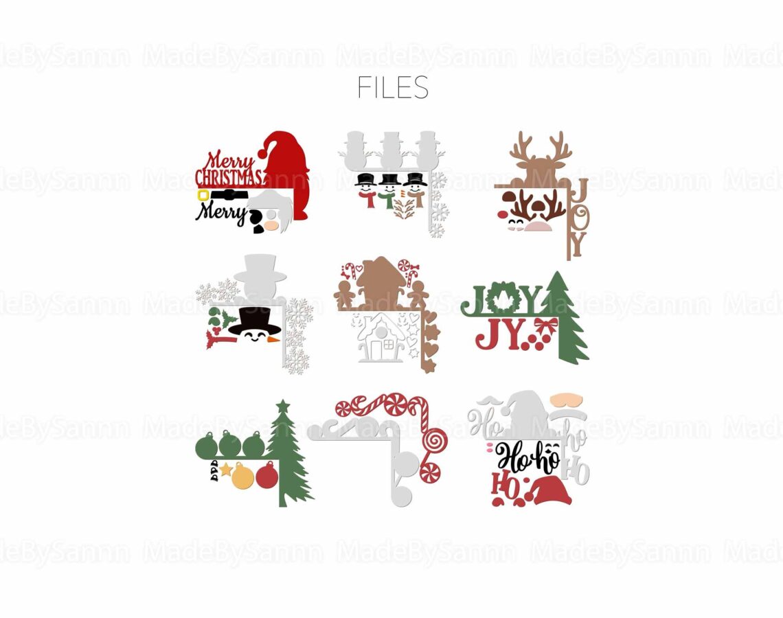 🎄 ¡Decora tu hogar con nuestras maravillosas esquinas de puertas navideñas en formato SVG! Perfectas para añadir un toque festivo, estas encantadoras ilustraciones incluyen gnomos, el famoso Gingerman y un alegre Santa Claus. Ideal para el corte láser 🎅✨.