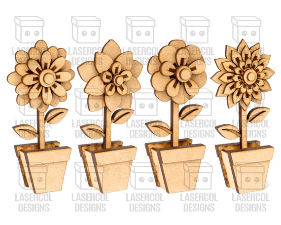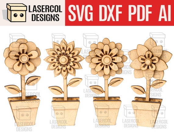 Set de Cortes Láser de Flores 3D – Archivos SVG, DXF, PDF, Ai para Glowforge – Regalo Día de la Madre