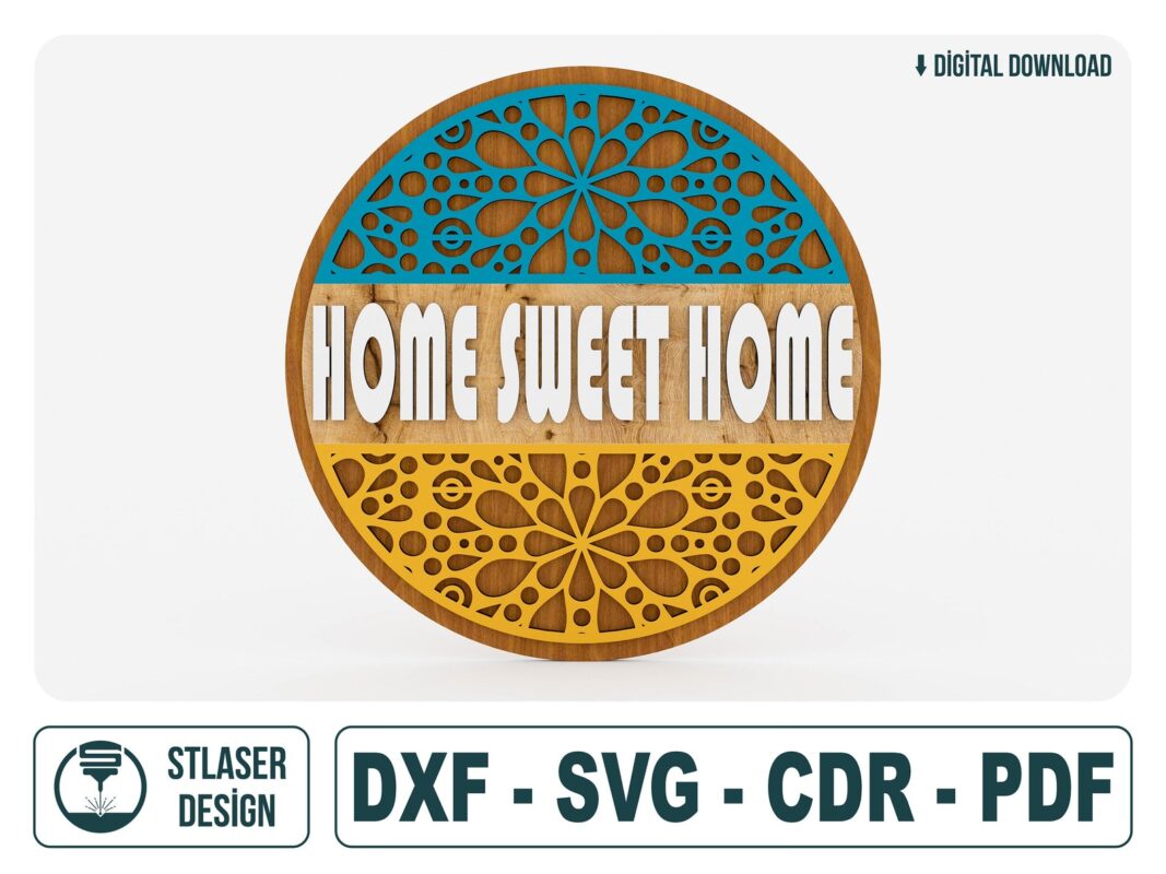 Decoración de pared «Hogar Dulce Hogar» – Archivo de corte láser para personalizar interiores