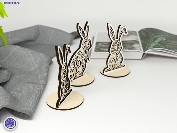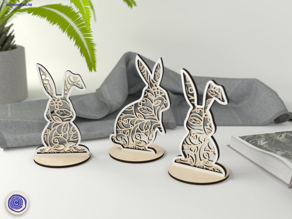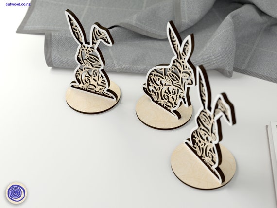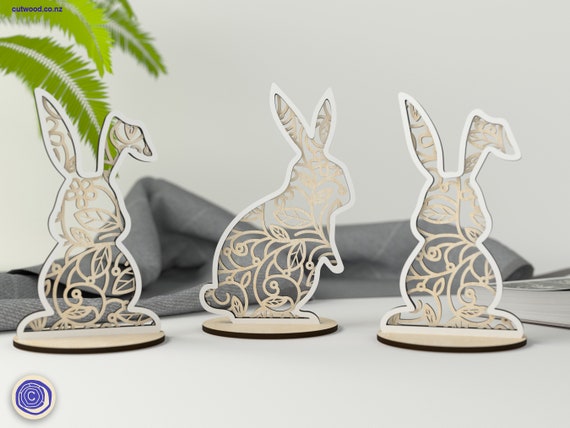Juego de 3 Conejitos de Pascua Florales – Archivos para Corte Láser Glowforge