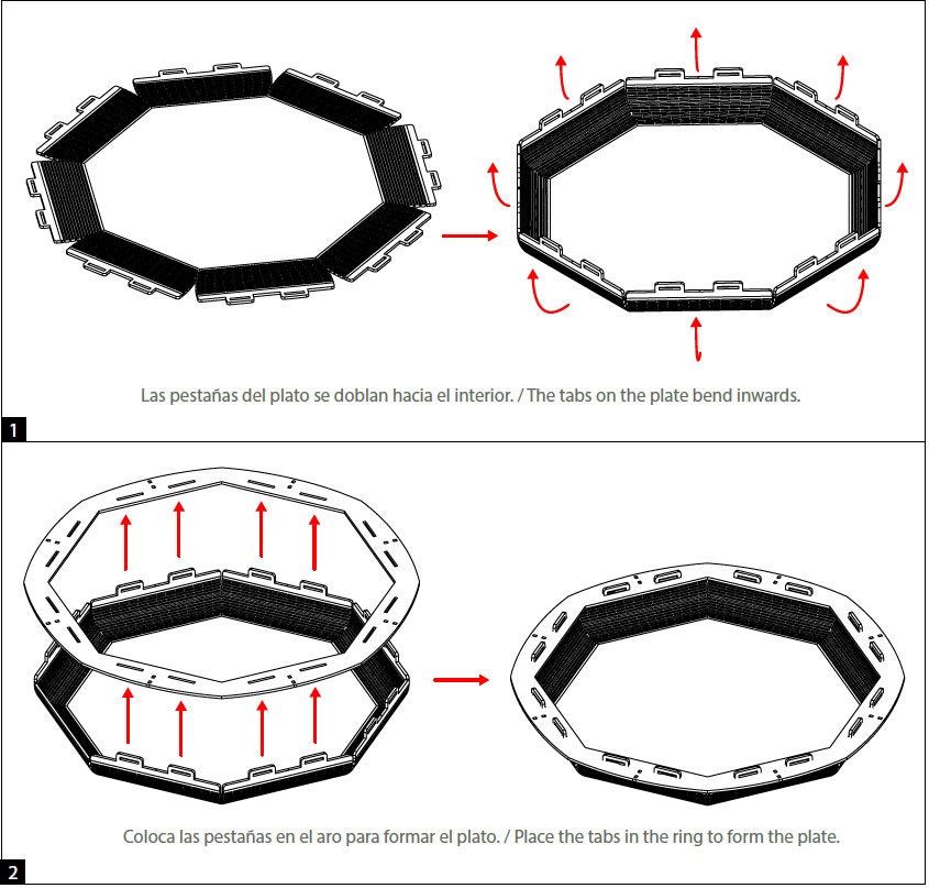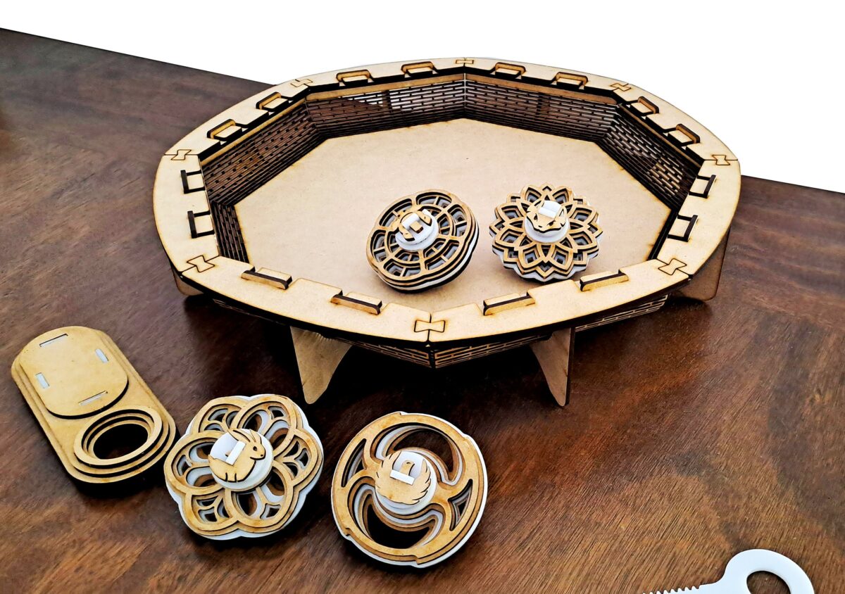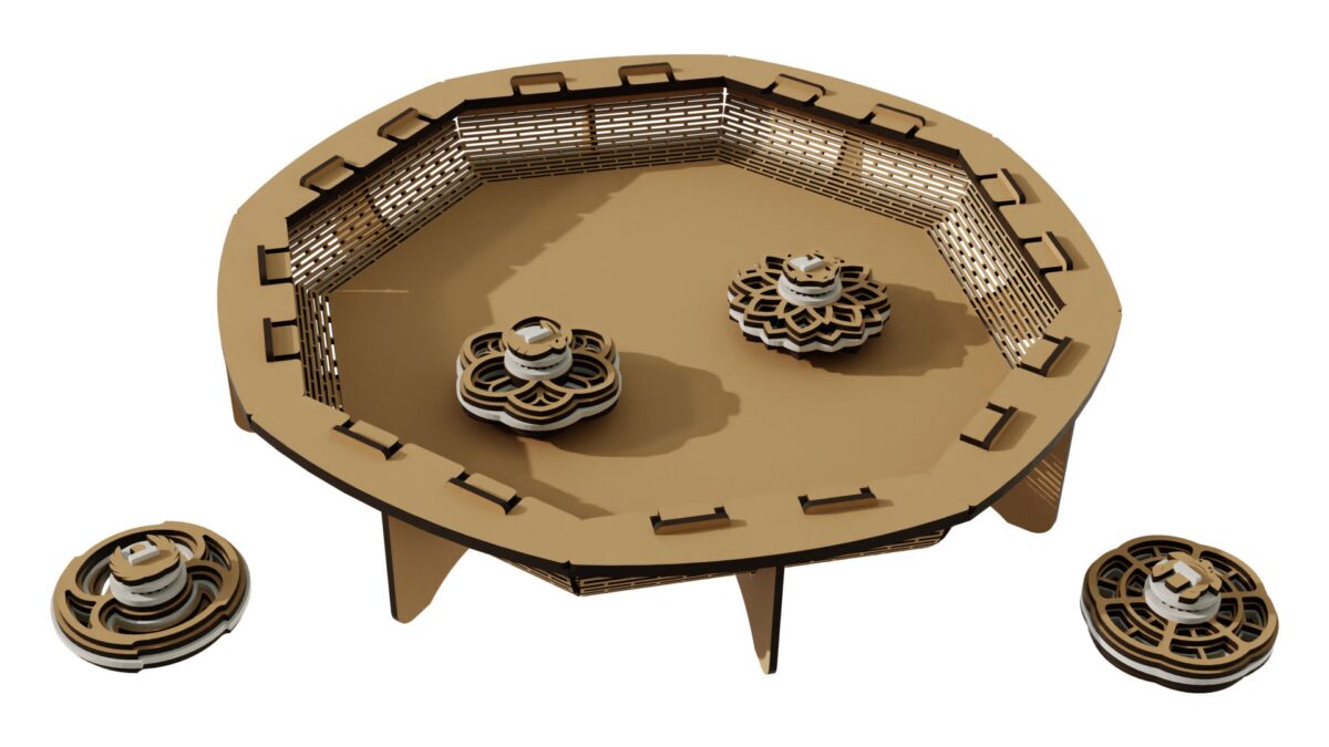 Juego de 4 trompos con estadio – Archivos digitales para corte láser + Manual de ensamble Bilingüe