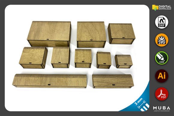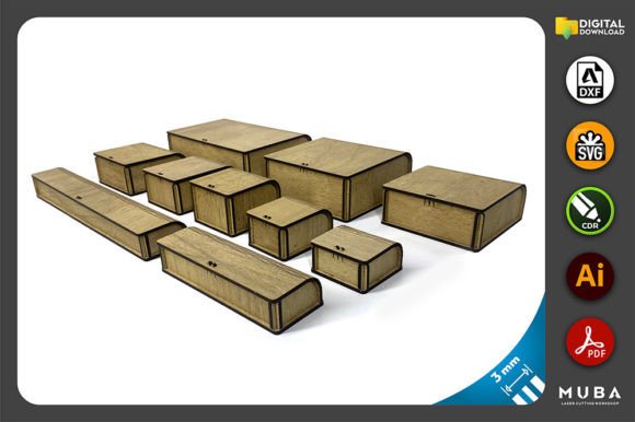 Juego de cajas ovaladas de 10 tamaños para corte láser – Almacenamiento personalizable