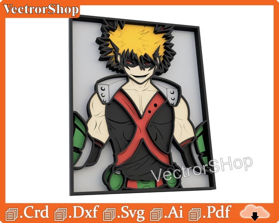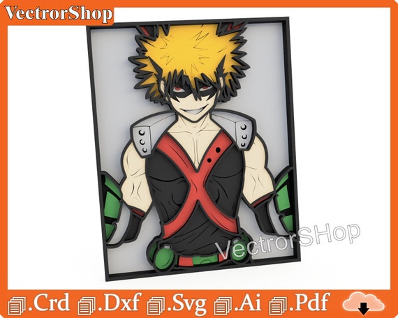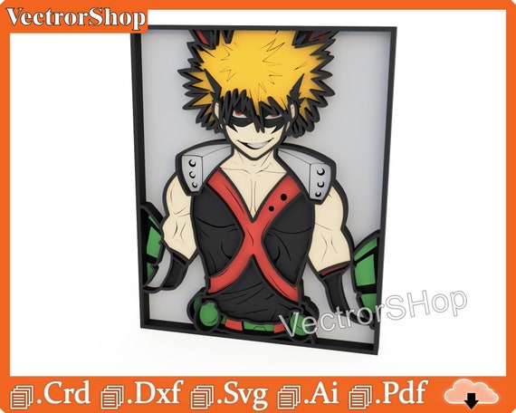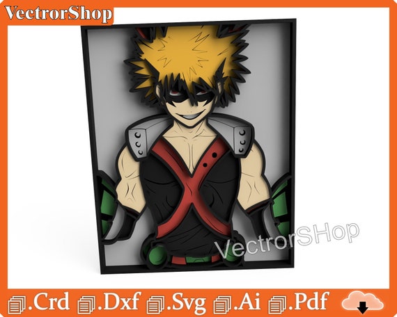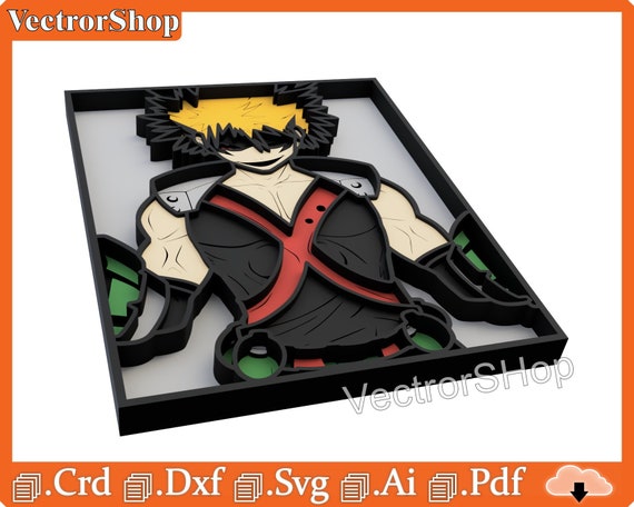 Caja multicapa Katsuki Bakugo para corte láser – Plantillas y vectores decorativos anime