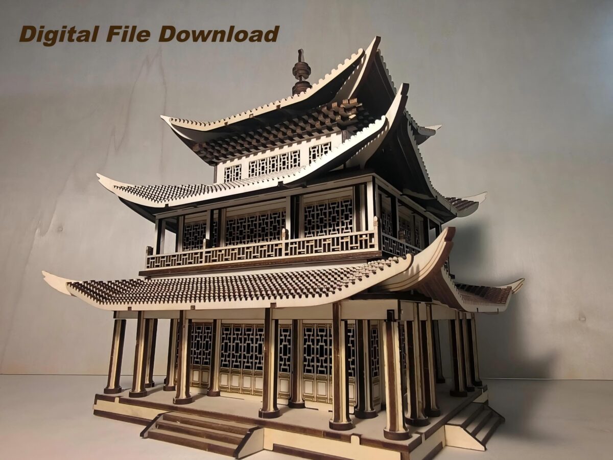 Kit de Pagoda de Madera 3D para Cortadora Láser – Modelos SVG-DXF-AI para Decoración del Hogar