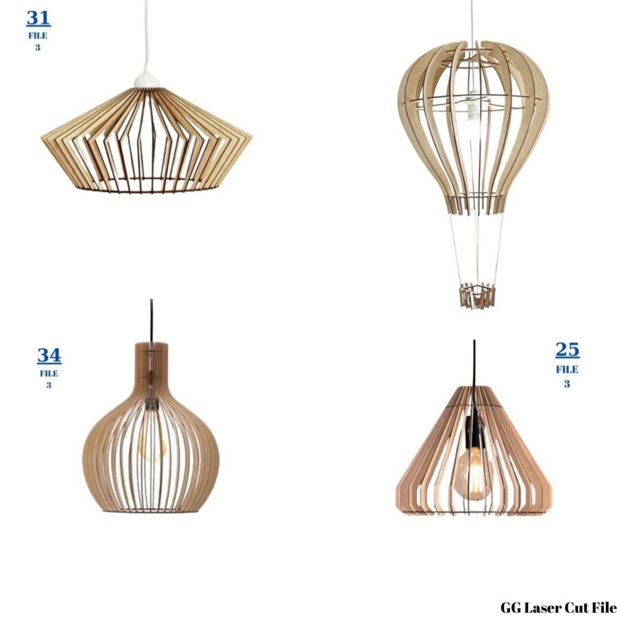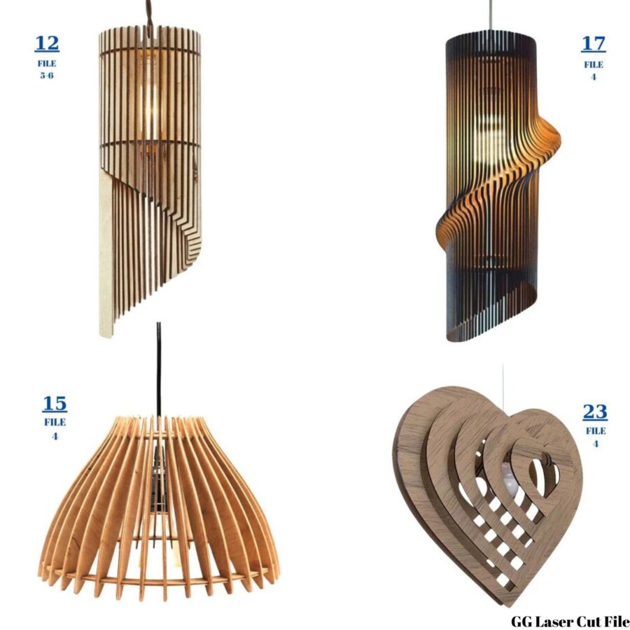 Lámpara colgante de madera cortada con láser – 40+ diseños personalizables en 3, 4 y 5 mm
