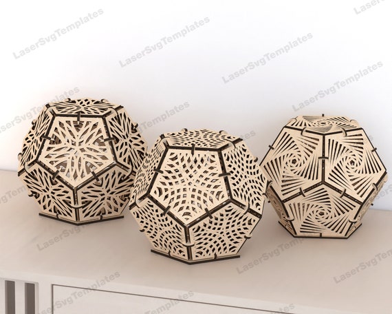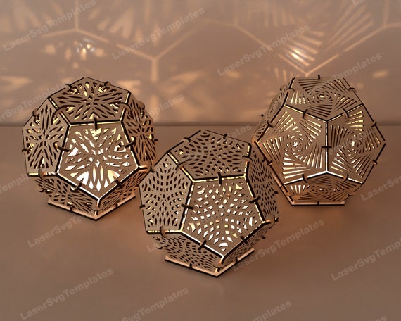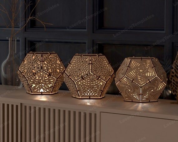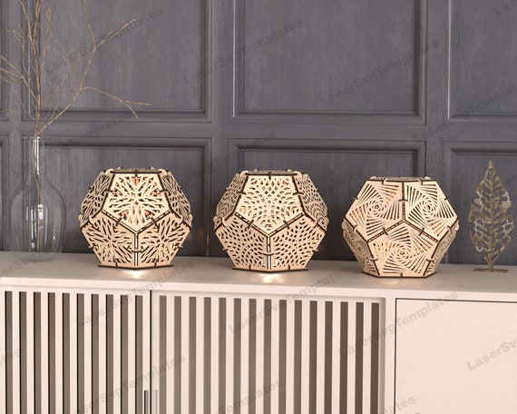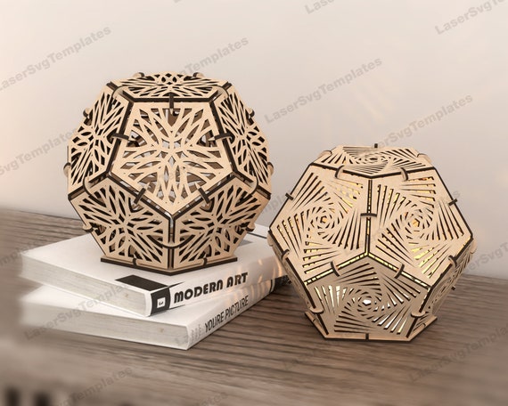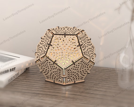 Lámpara de Mesa Dodecaedro de Madera – Plantilla SVG para Glowforge y CNC Decorativa