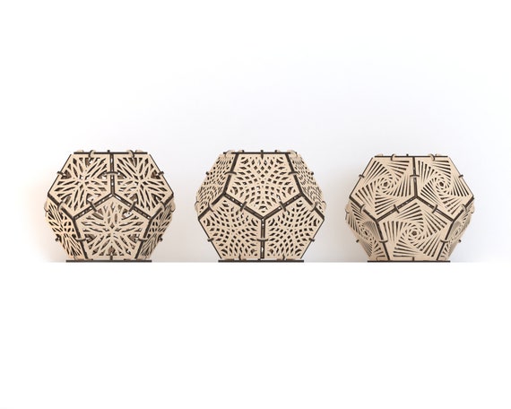 4 valoraciones en Lámpara de Mesa Dodecaedro de Madera – Plantilla SVG para Glowforge y CNC Decorativa