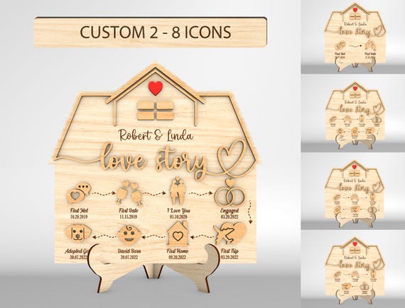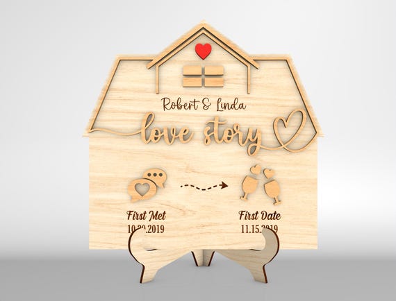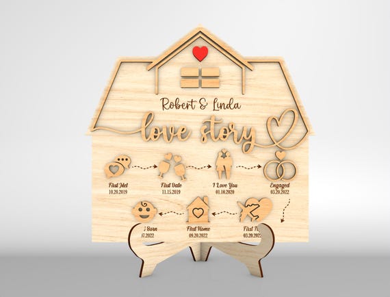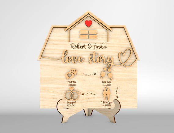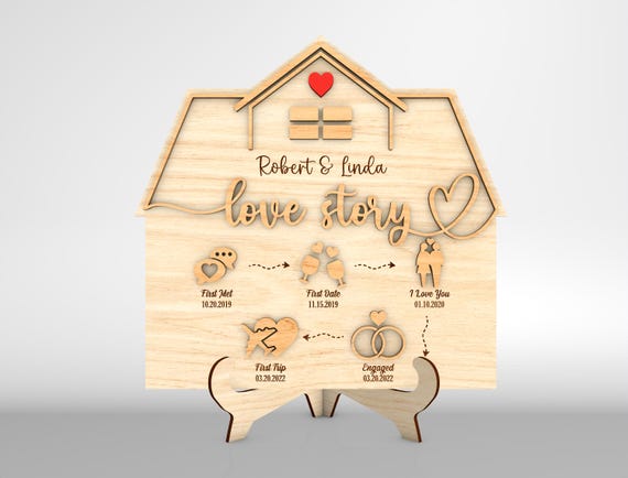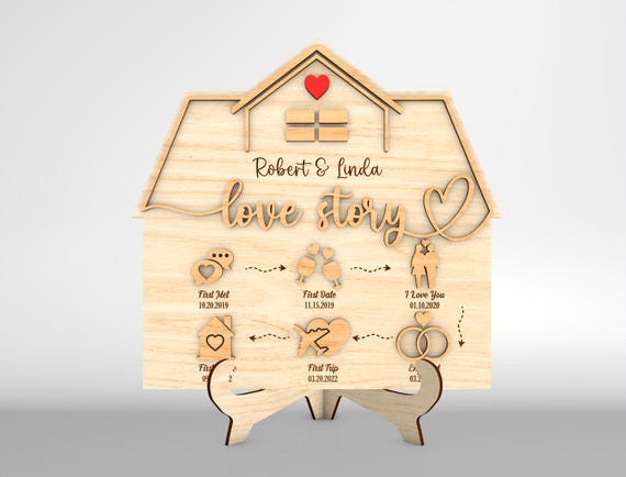 Letrero de Casa Cronología de Amor SVG – Regalo de Aniversario y San Valentín – Archivos para Corte Laser