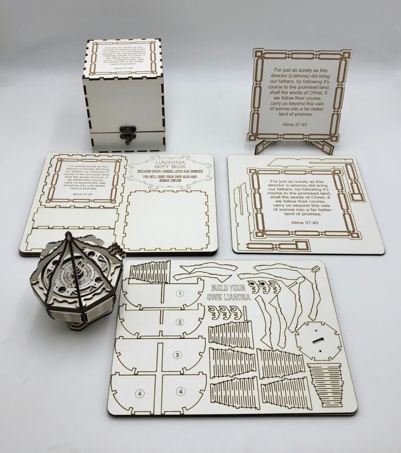 Descarga Archivos SVG y DXF para Cortar a Láser Liahona, Caja de Regalo y Caballete