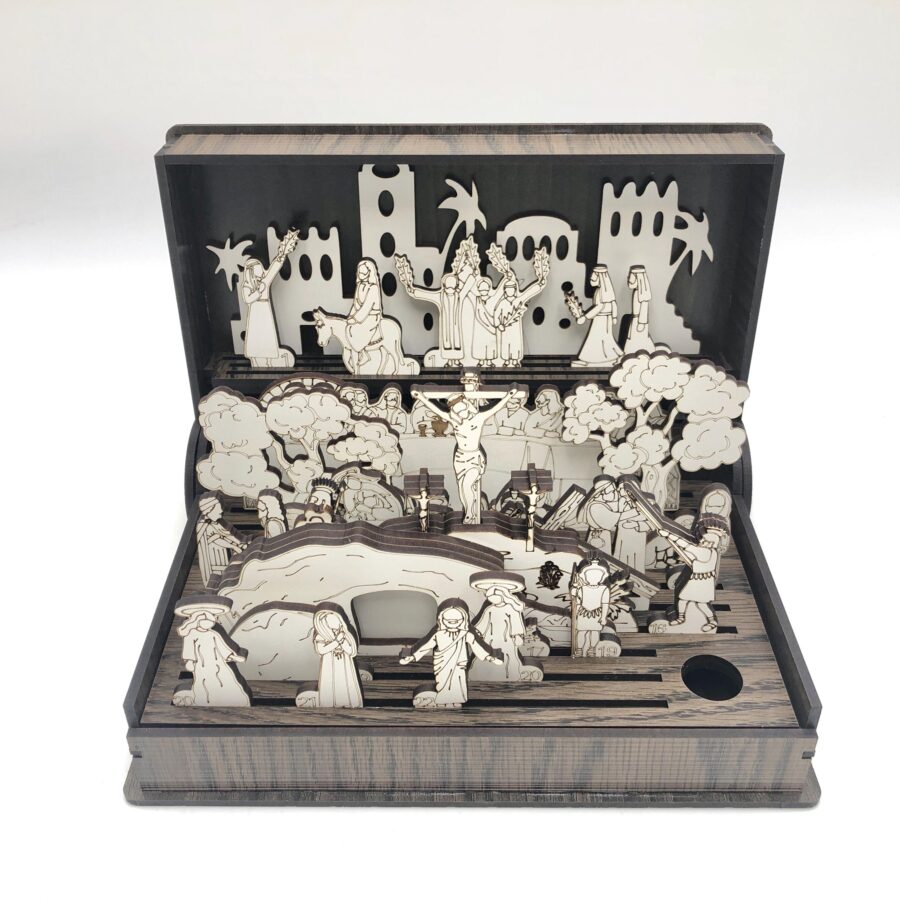 Libro desplegable de Semana Santa en DXF y SVG para corte láser – Ayuda didáctica y exhibición de madera