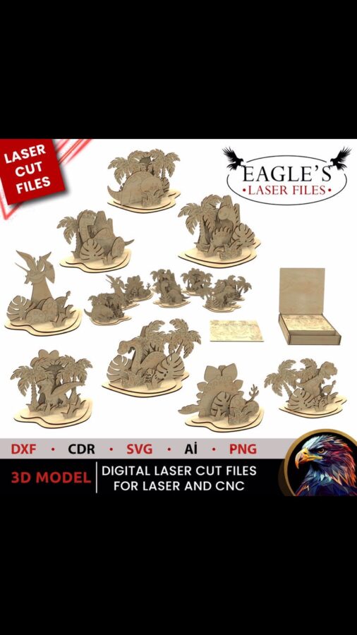 Limas láser Isla de los Dinosaurios – 8 modelos educativos de 3 mm para jóvenes creativos