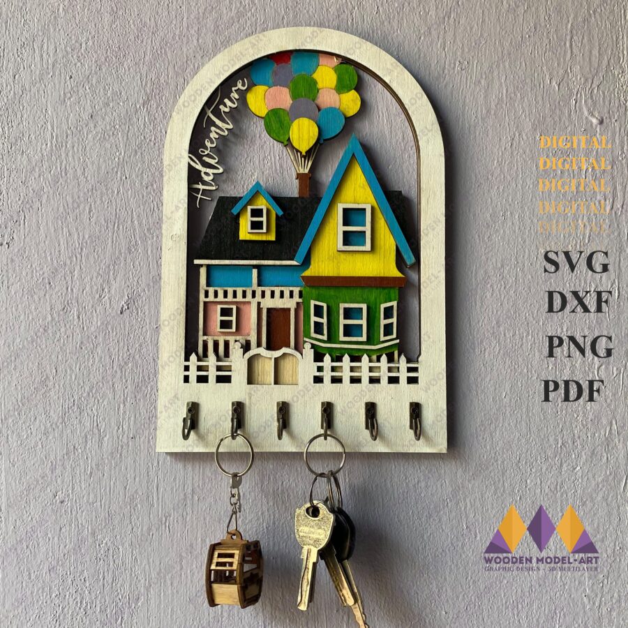 6 valoraciones en Llavero Casa de Globos y Decoración de Pared Corte Láser para Glowforge – Arte en Madera Personalizado