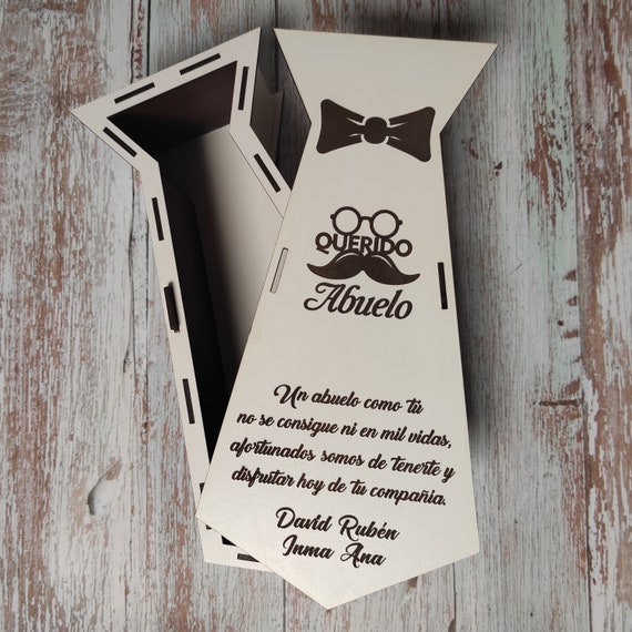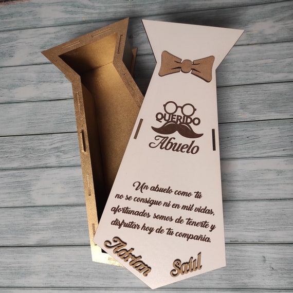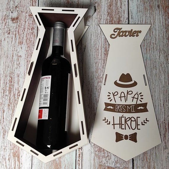 🍷 ¡Sorprende a papá con nuestra exclusiva caja de vino personalizada para el Día del Padre! 🎁 Diseñada con un elegante formato de corbata, esta caja es perfecta para “vestir” esa botella especial de vino, whisky o ron que has elegido. Con dimensiones de 35 x 18 x 10 cm, se adapta idealmente a cualquier botella, convirtiéndola en un regalo original y espectacular que hará que parezcas un auténtico duque (o duquesa). 👑 Además, viene lista para ser cortada en una máquina láser, ¡perfecta para añadir un toque único!