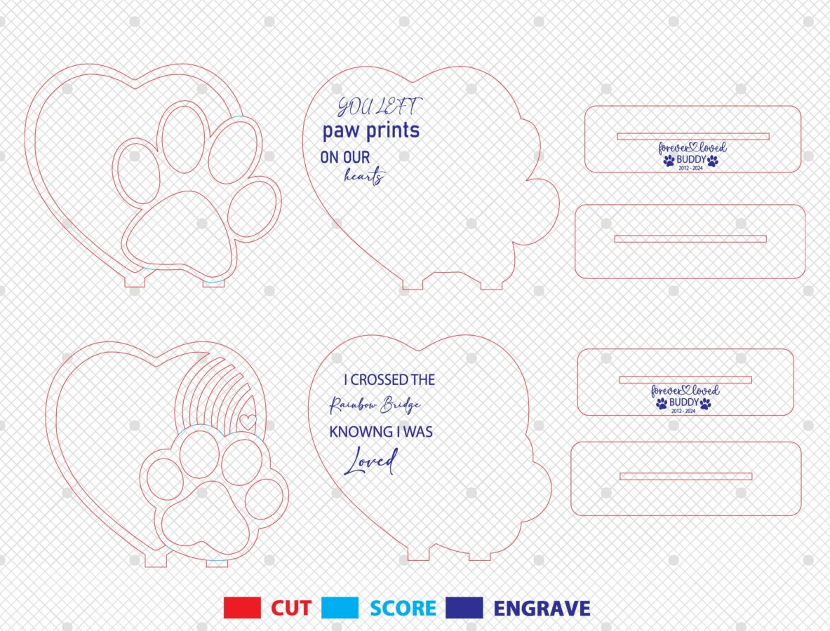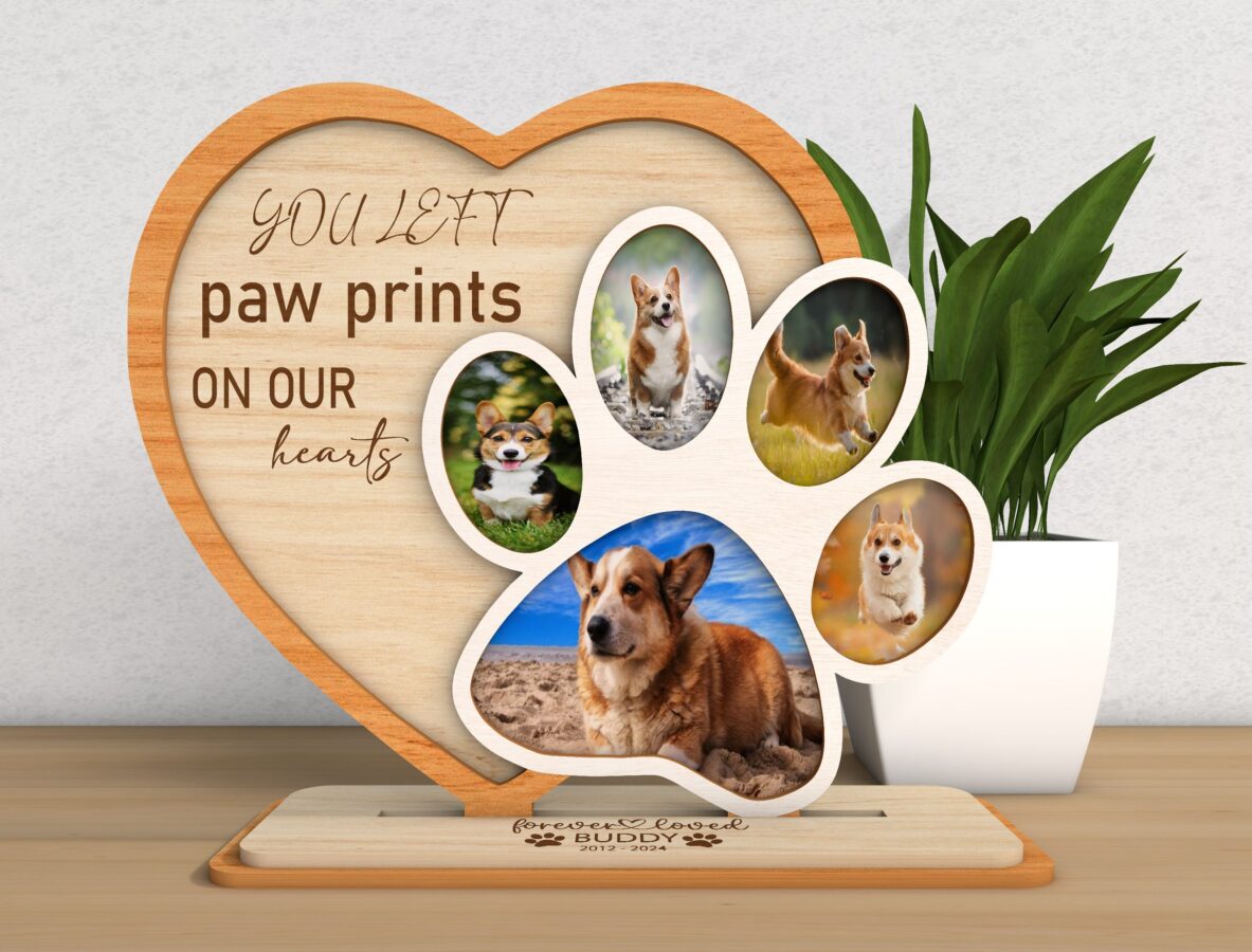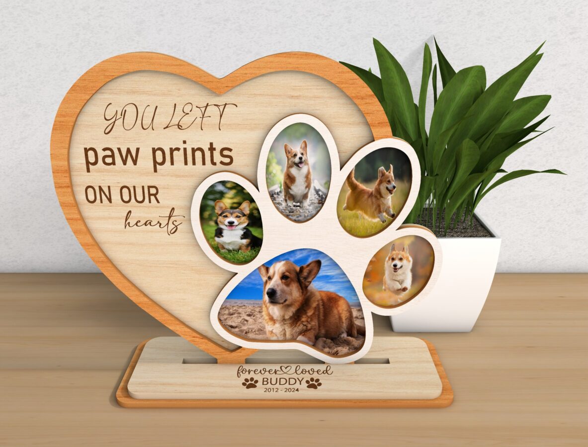 🌟 Celebra la vida de tus mascotas con nuestro marco conmemorativo, una hermosa forma de preservar sus recuerdos. Este archivo digital de corte láser incluye todo lo que necesitas para crear un bello recuerdo de tus perros y gatos.
