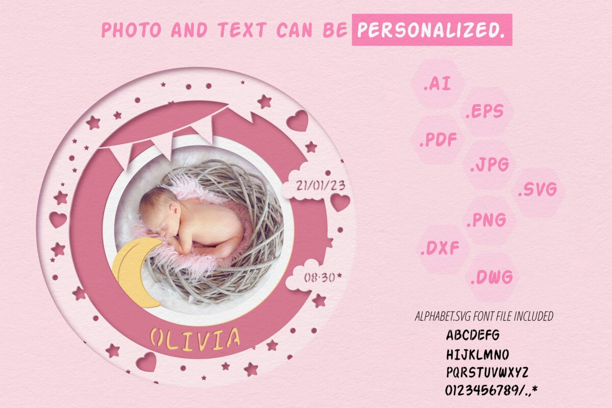 4 valoraciones en Marco de Fotos de Bebé 3D Shadow Box SVG para Corte Láser – Diseño Personalizado y Creativo