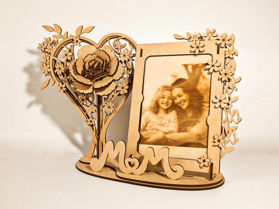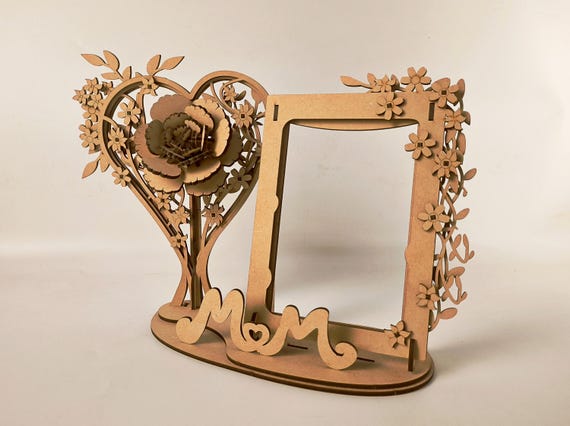 Marco de fotos floral en forma de corazón SVG para corte láser en madera – Descarga digital regalo mamá