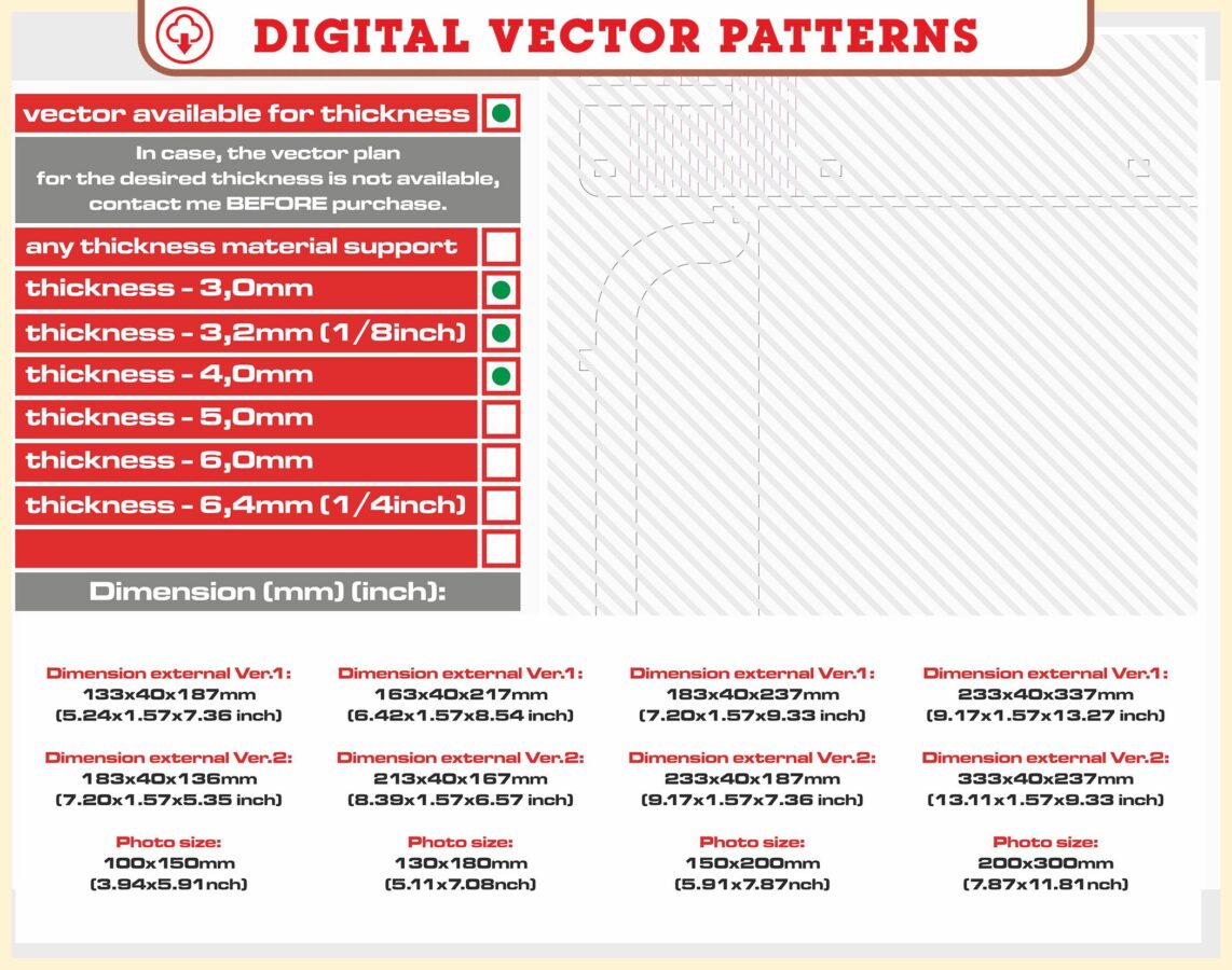 - Archivo Digital: Incluye solo el archivo de corte láser, sin elementos físicos.