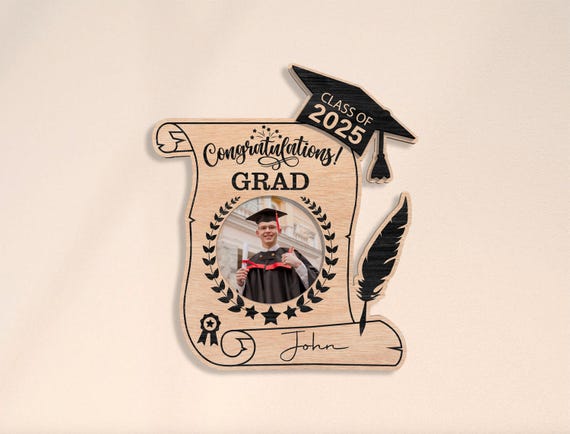 🎓 ¡Celebra la graduación de 2025 con un marco de fotos personalizado único! Este archivo digital está diseñado especialmente para ser utilizado con tu Glowforge, ofreciendo un regalo perfecto para graduados que buscan un toque personal en su celebración.