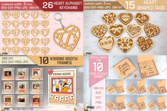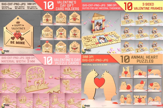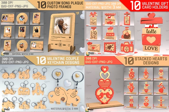 🎉 ¡Celebra el amor con nuestro Paquete San Valentín! 💖 Este increíble conjunto incluye 469 diseños SVG ideales para corte láser 3D, perfectos para crear tarjetas, cajas y marcos de fotos personalizados. Recibirás 2 carpetas zip que contienen todos los diseños en formatos SVG y DXF, además de un catálogo y un archivo PDF con el enlace de descarga para obtener diseños en 6 formatos: PDF, SVG, PNG, JPEG, DXF y EPS.