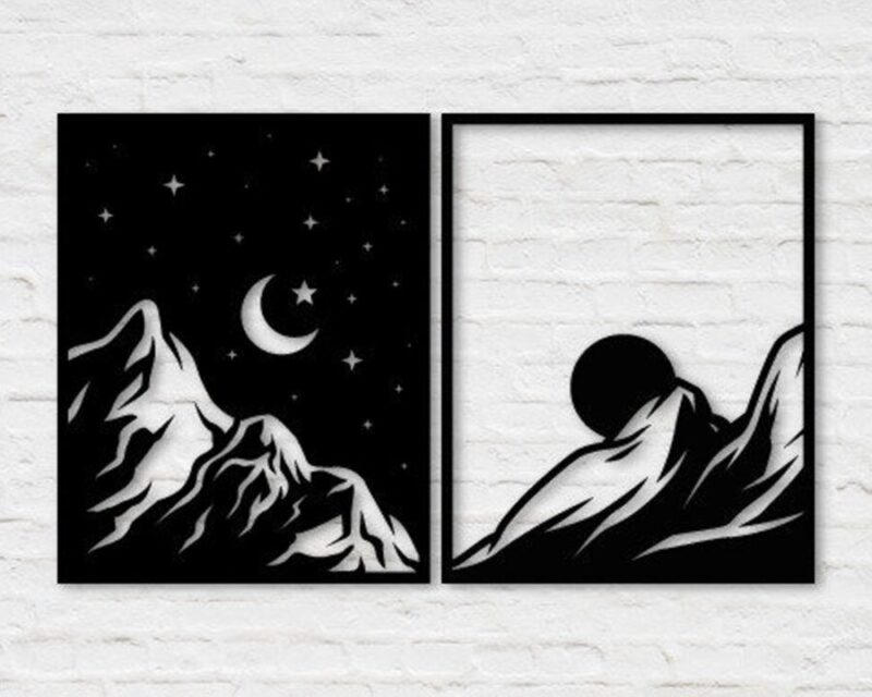Cuadros de pared de montaña día y noche para corte láser – Decoración personalizada