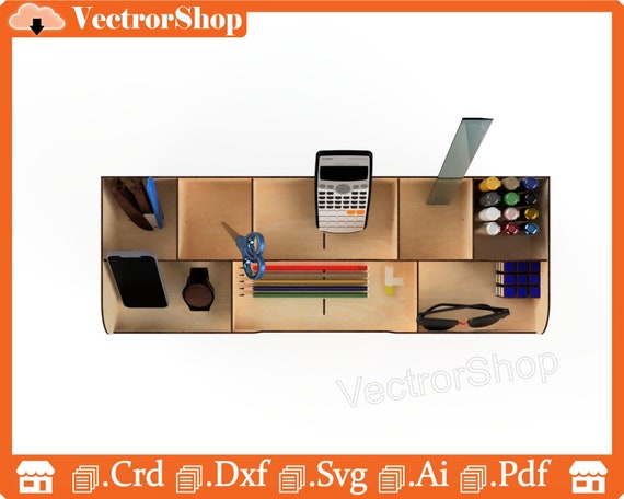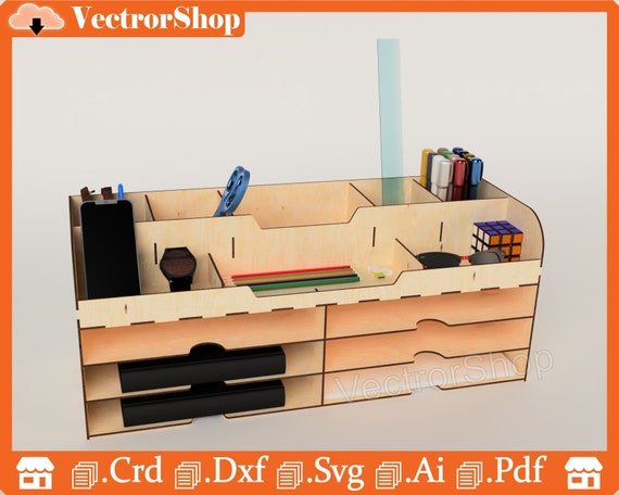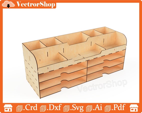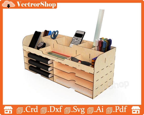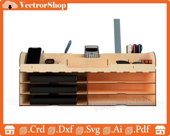 Organizador de escritorio láser exclusivo | Soporte y almacenamiento para casa | SVG y DXF