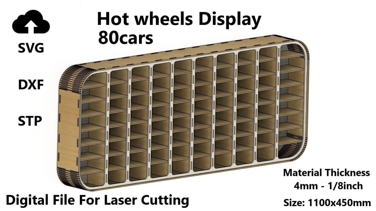 Organizador de exhibición para autos Hot Wheels – Archivo de corte láser SVG/DXF para almacenamiento eficiente