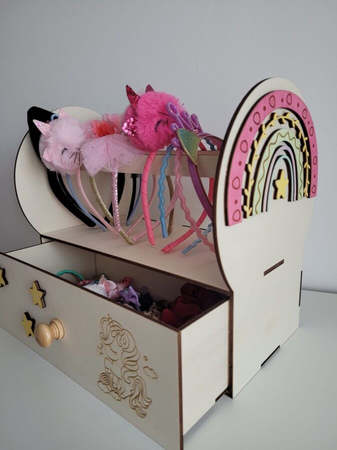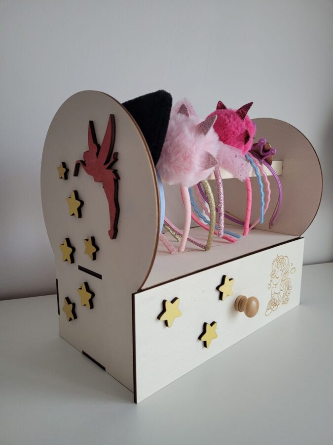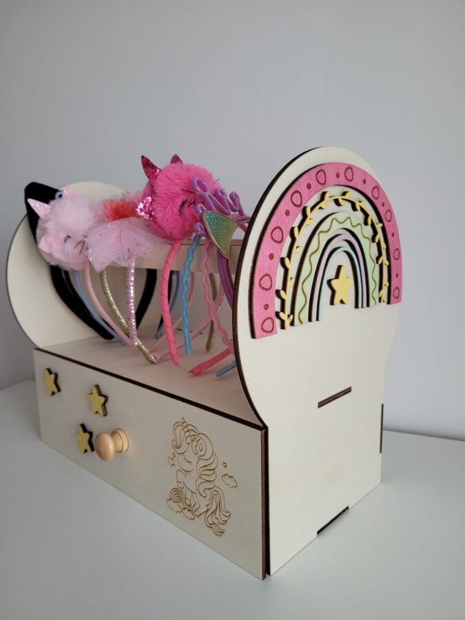 🌟 ¡Presentamos el Organizador de Lazos para Diademas de Niñas! Perfecto para mantener ordenados los accesorios infantiles. Este archivo SVG está diseñado para corte láser y permite una decoración encantadora en habitaciones de niñas.