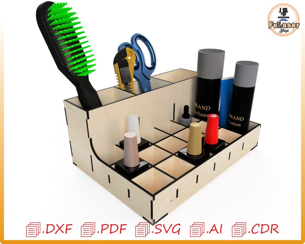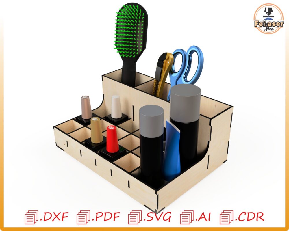 Organizador de Maquillaje Personalizado para Corte Láser – Almacenamiento Creativo y Moderno