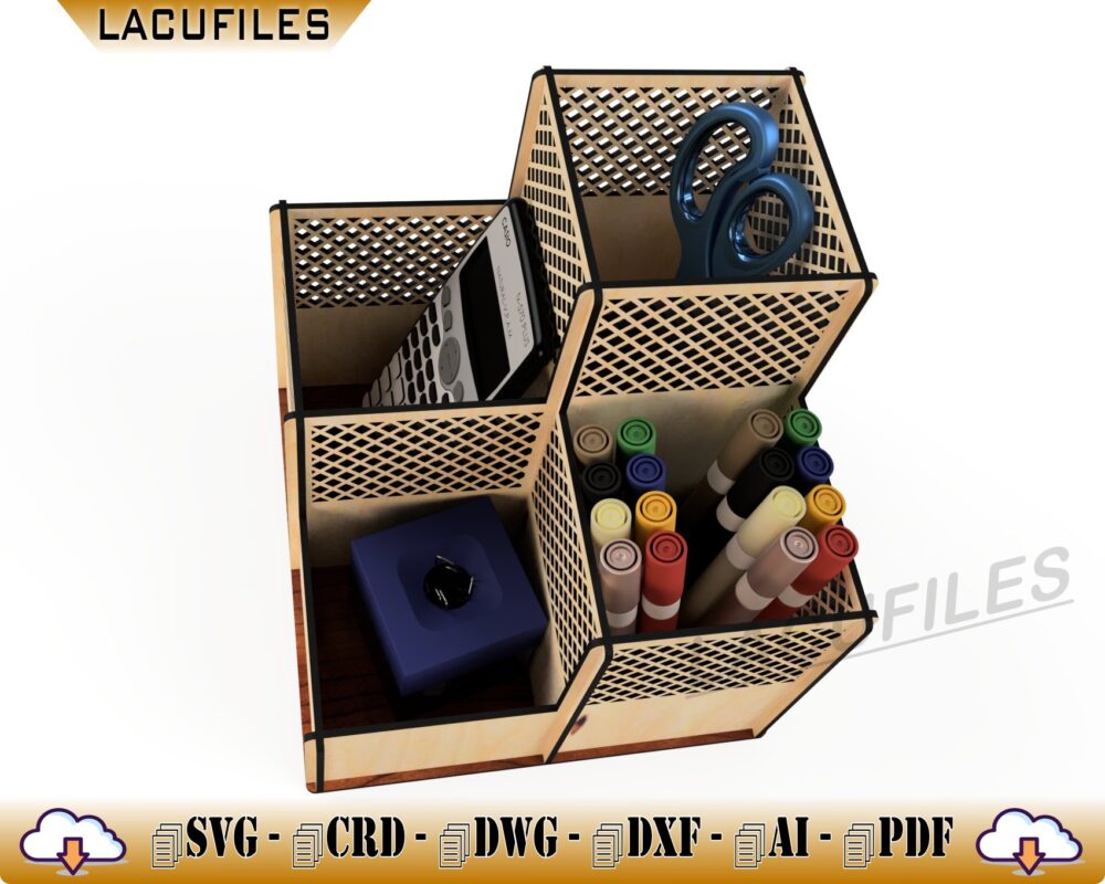 Organizador de Mesa para Corte Láser: Soporte Personalizado para Plumas y Lapiceros