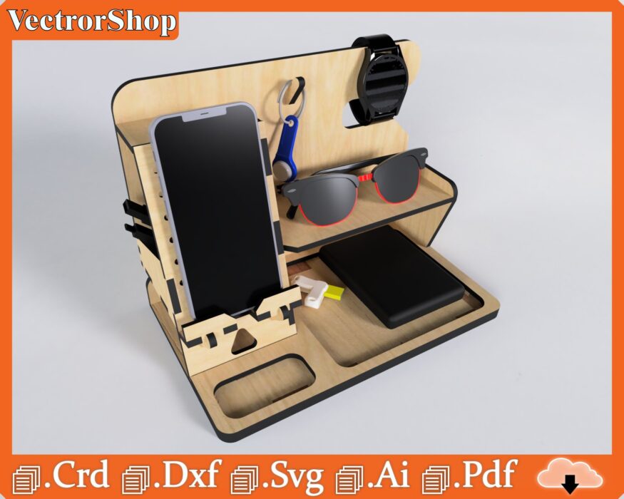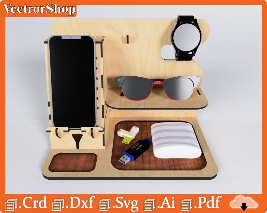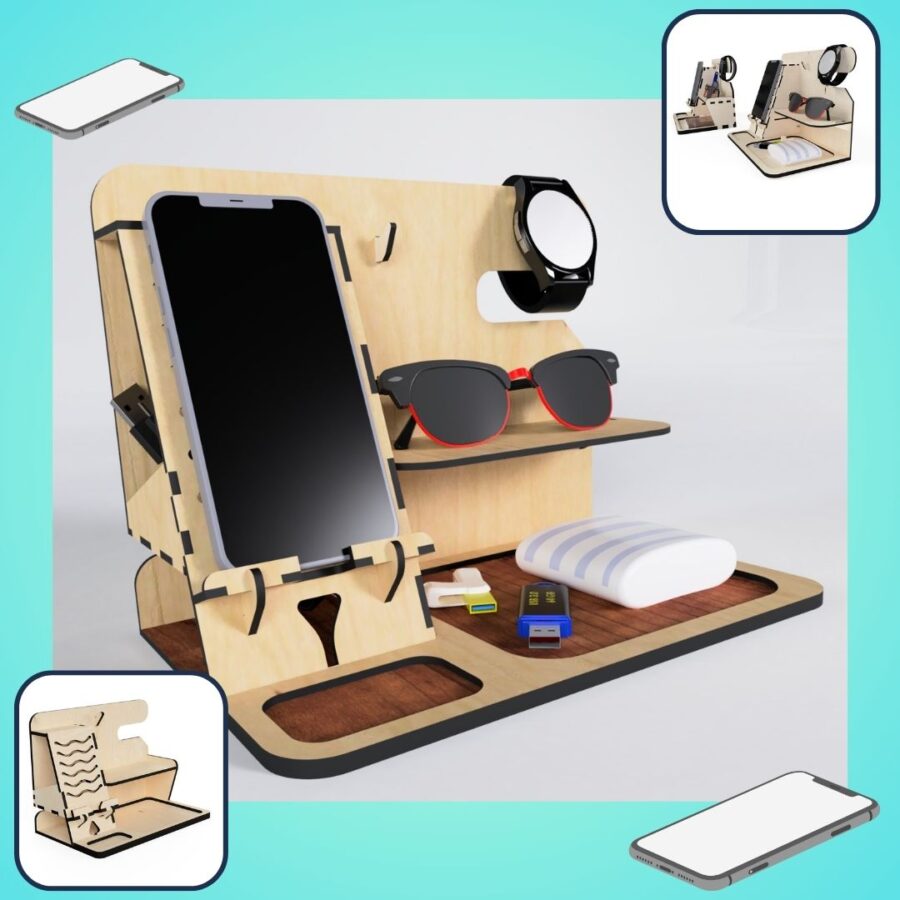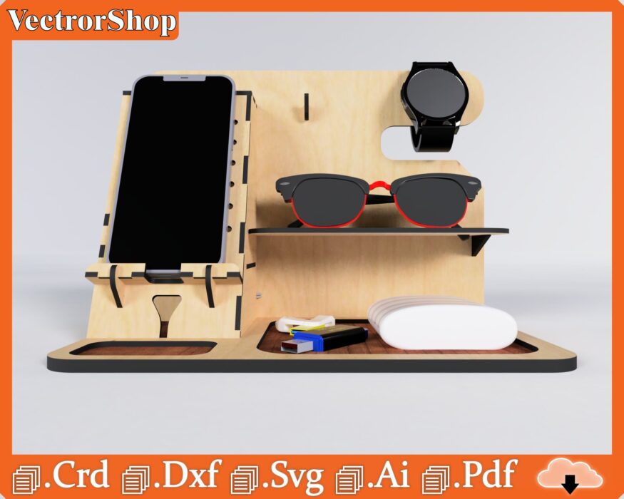 Organizador de Mesa Multifuncional para Celular, Gafas y Reloj – Plantillas de Corte Láser