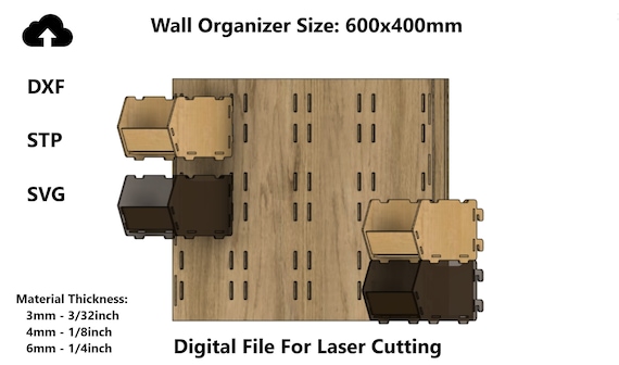 3 valoraciones en Organizador de Pared para Corte Láser | Archivo SVG DXF para Caja de Almacenamiento
