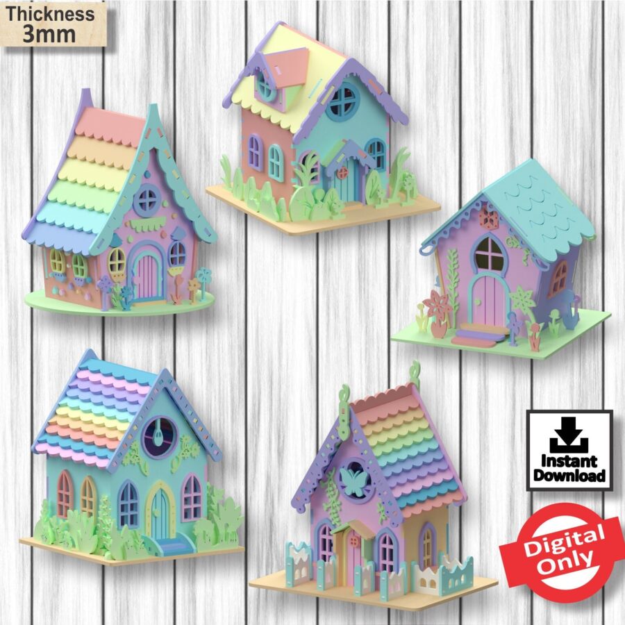 4 valoraciones en Pack de 5 Casas de Hadas para Corte Láser – Diseño Vectorial SVG para Descarga Inmediata
