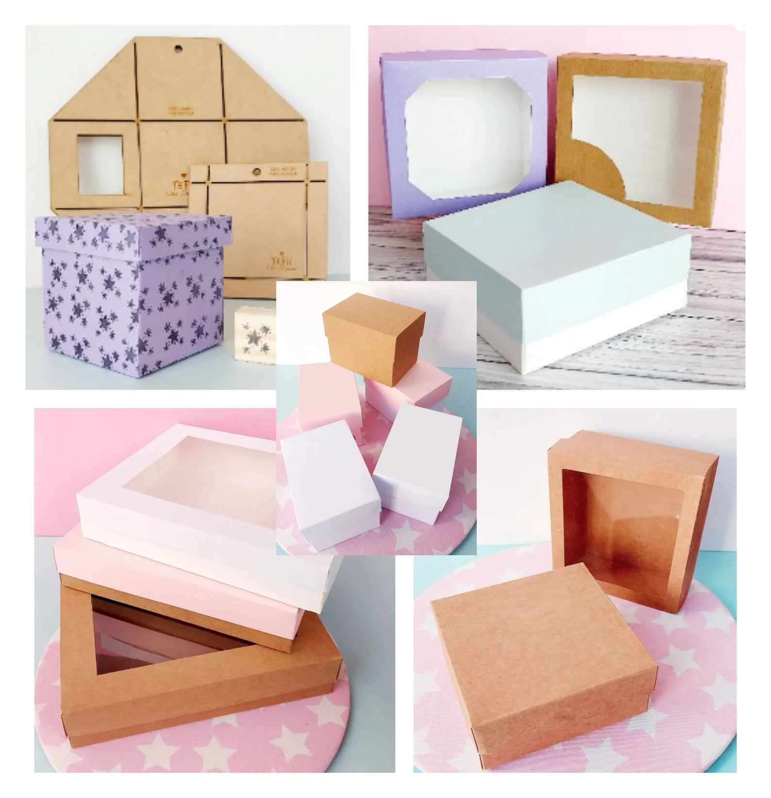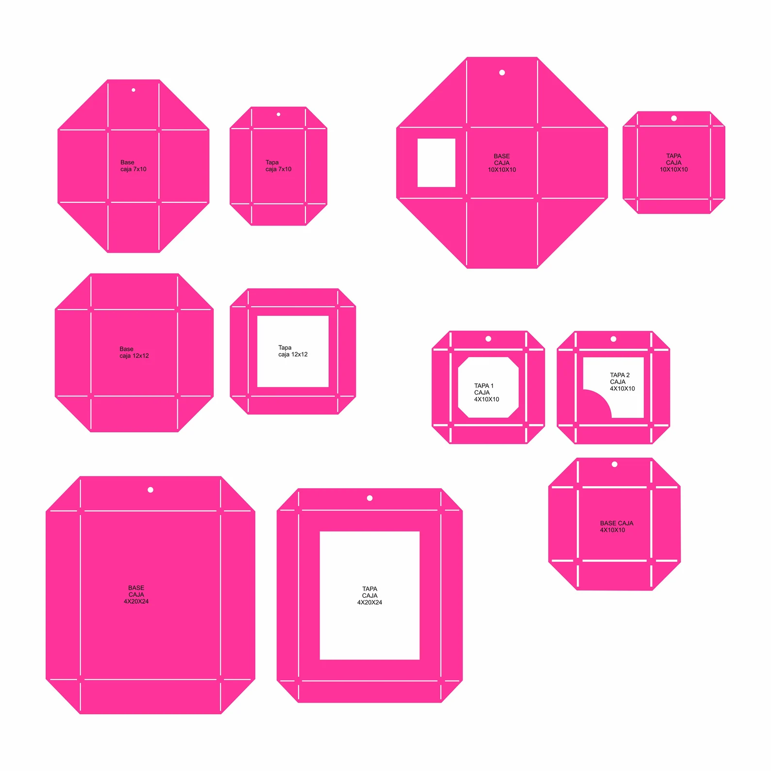 Colección digital de moldes y plantillas en vectores para fabricar y montar diferentes tipos de cajas. Diseñados para corte láser, CNC o plotter de corte, permiten crear empaques personalizados en cartón, MDF delgado, triplay o acrílico.
