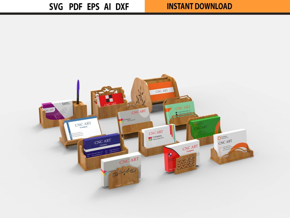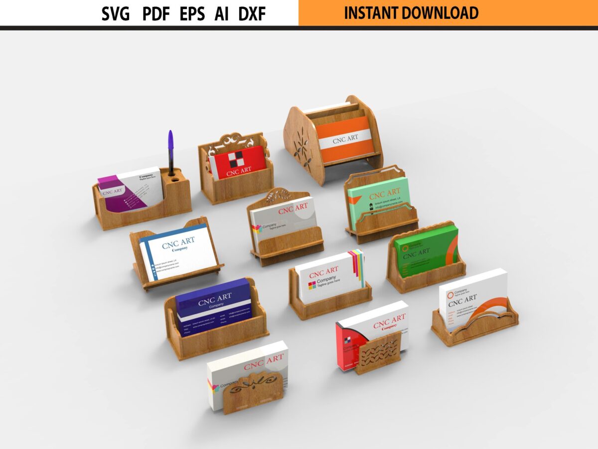 🎉 ¡Transforma tus ideas creativas con este Paquete de 12 Plantillas SVG de Portatarjetas Cortadas a Láser! ✂️ Este conjunto incluye 12 archivos de diseño diseñados especialmente para el corte láser, enrutamiento CNC y otras máquinas de corte, ideal para dar vida a tus portatarjetas de presentación.