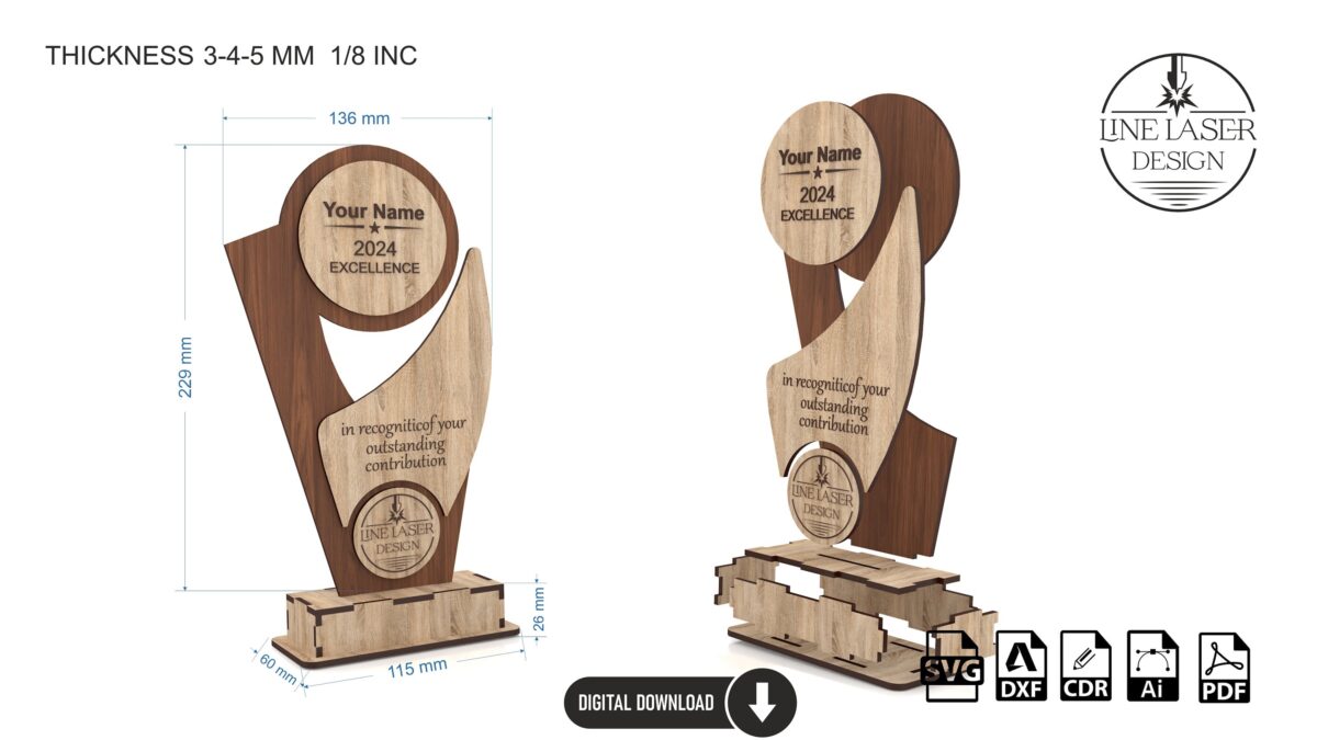 trofeo, SVG, corte láser, diseño exclusivo, archivo de descarga, Illustrator, CorelDRAW, PDF, premios.